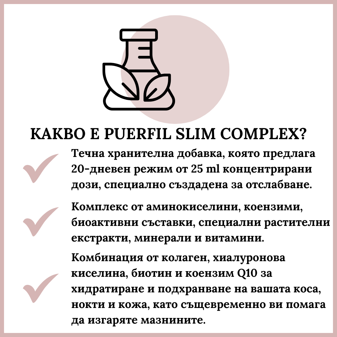 PUERFIL SLIM COMPLEX СЪДЪРЖА 22 СПЕЦИФИЧНИ СЪСТАВКИ