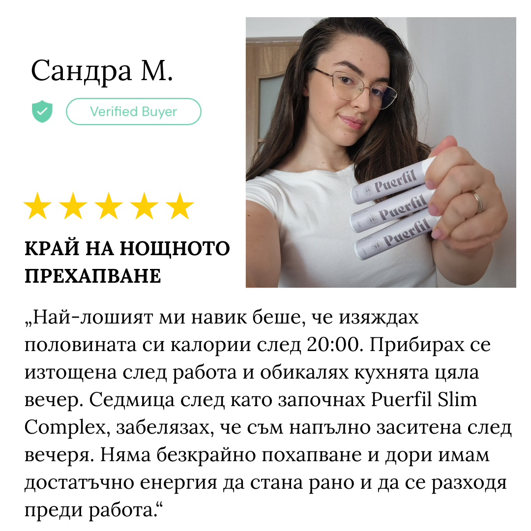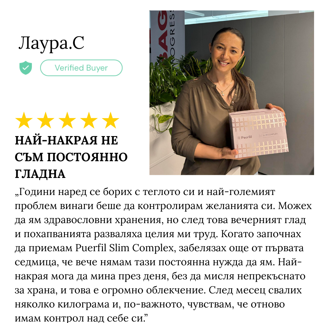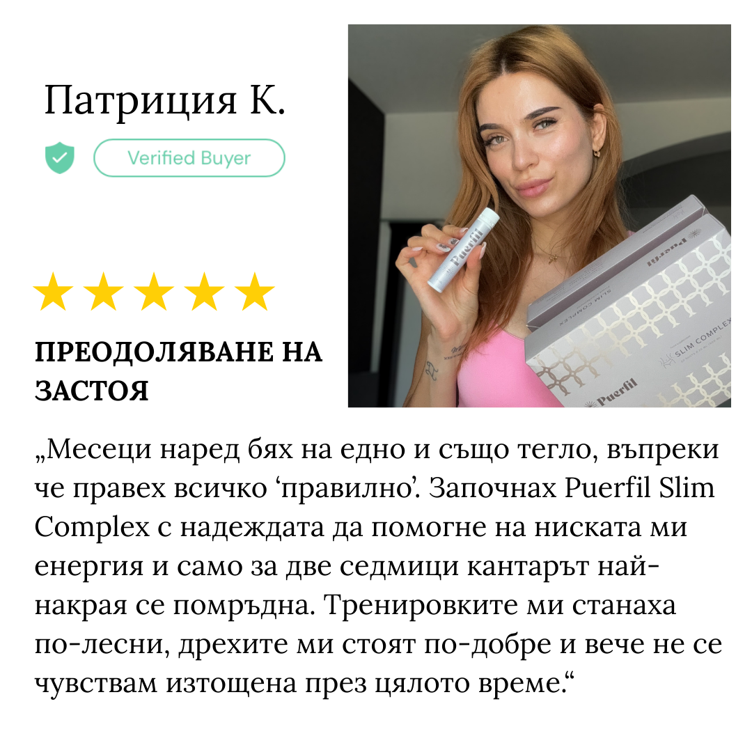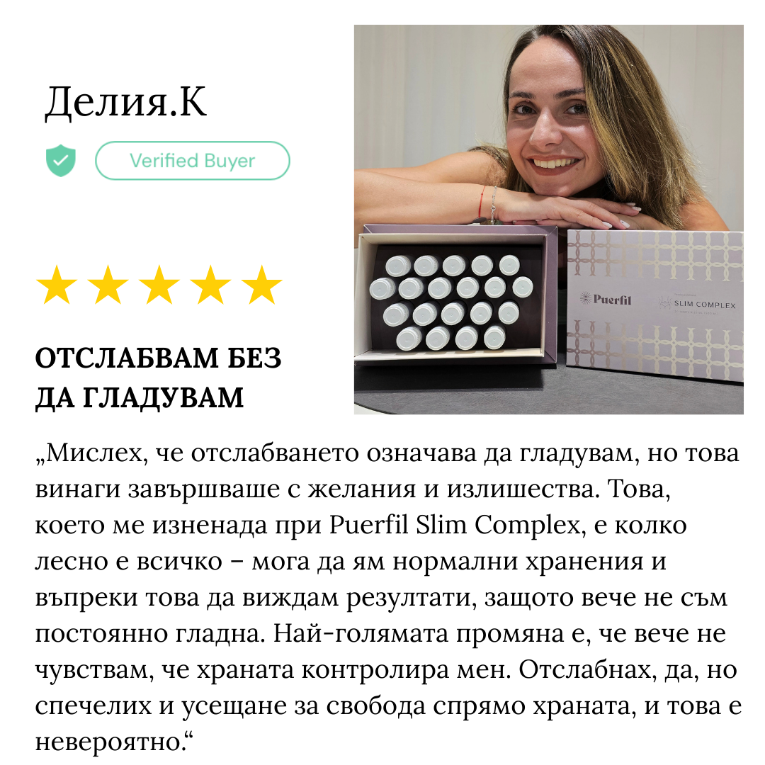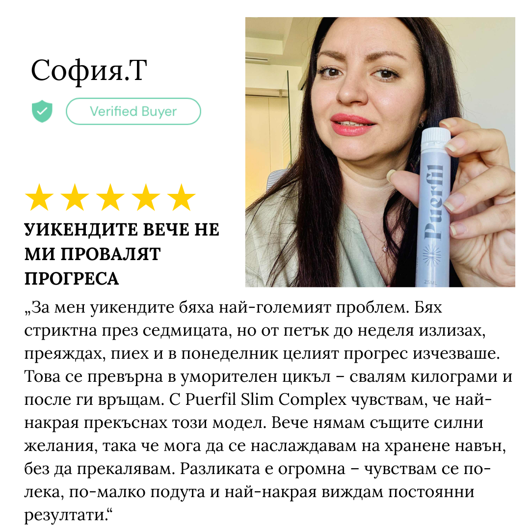 Използвайте Puerfil Slim Complex, за да подредите апетита, метаболизма и формата на тялото си в перфектна хармония и да покажете на света отново истинския ВИЕ.