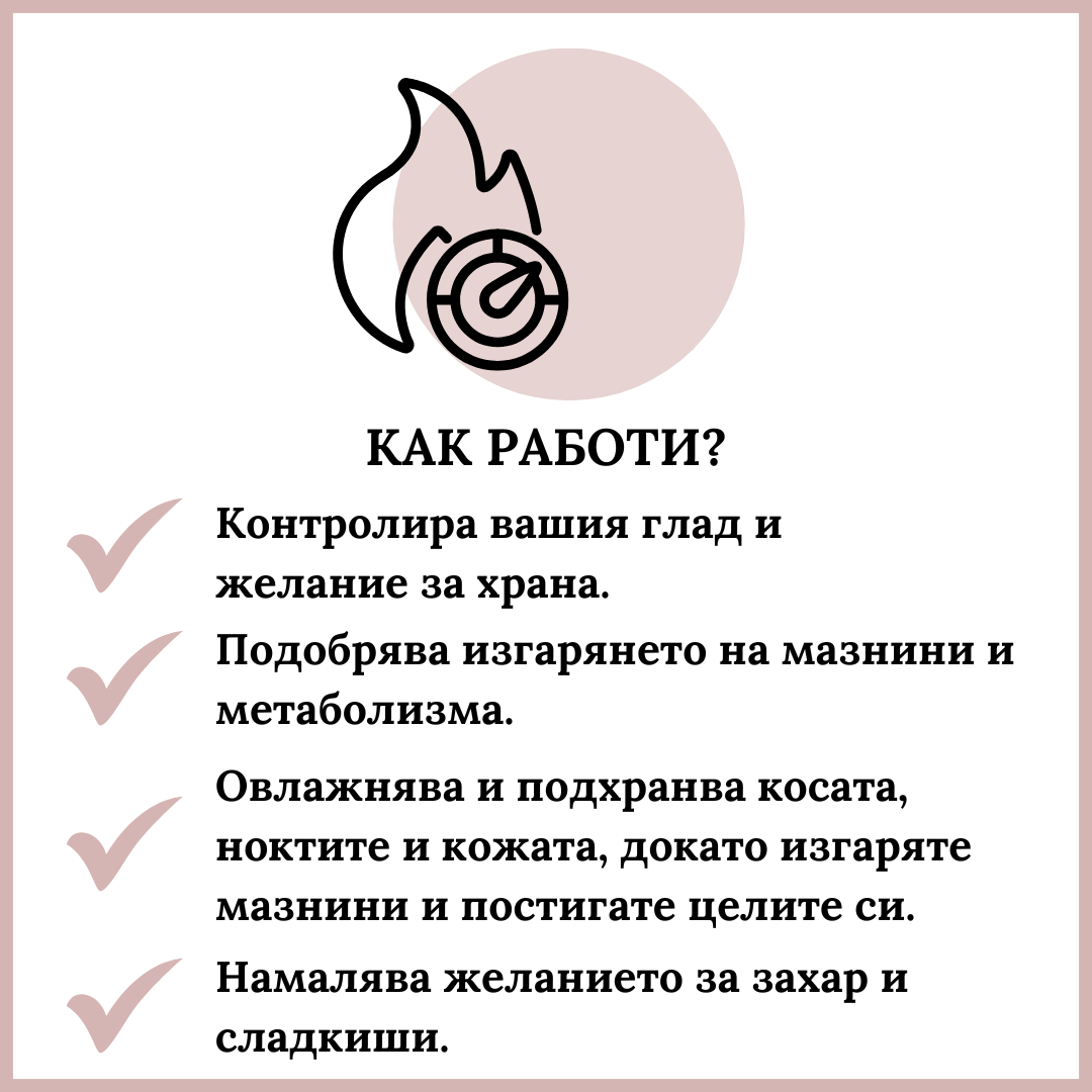 ✅ Работи на множество нива като хидратира и подхранва вашата коса, нокти и кожа, докато горите мазнини и постигате мечтаната фигура