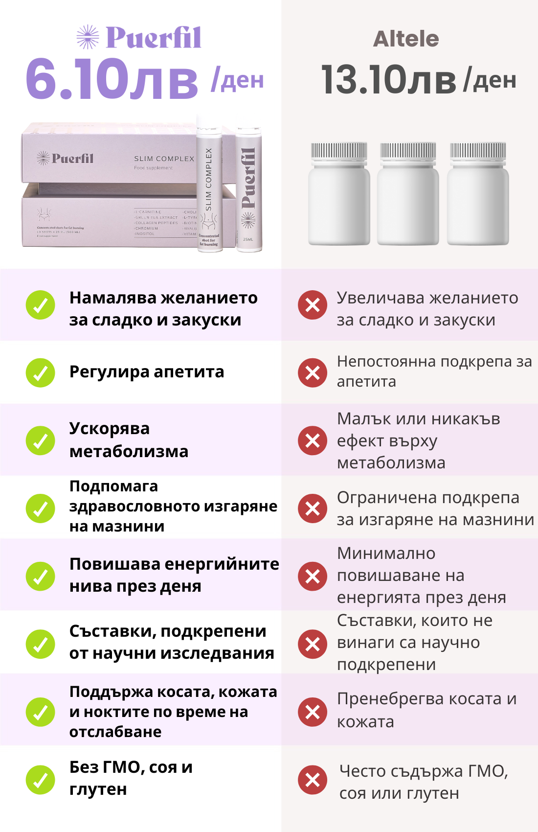 Puerfil Slim Complex в сравнение с други продукти за отслабване