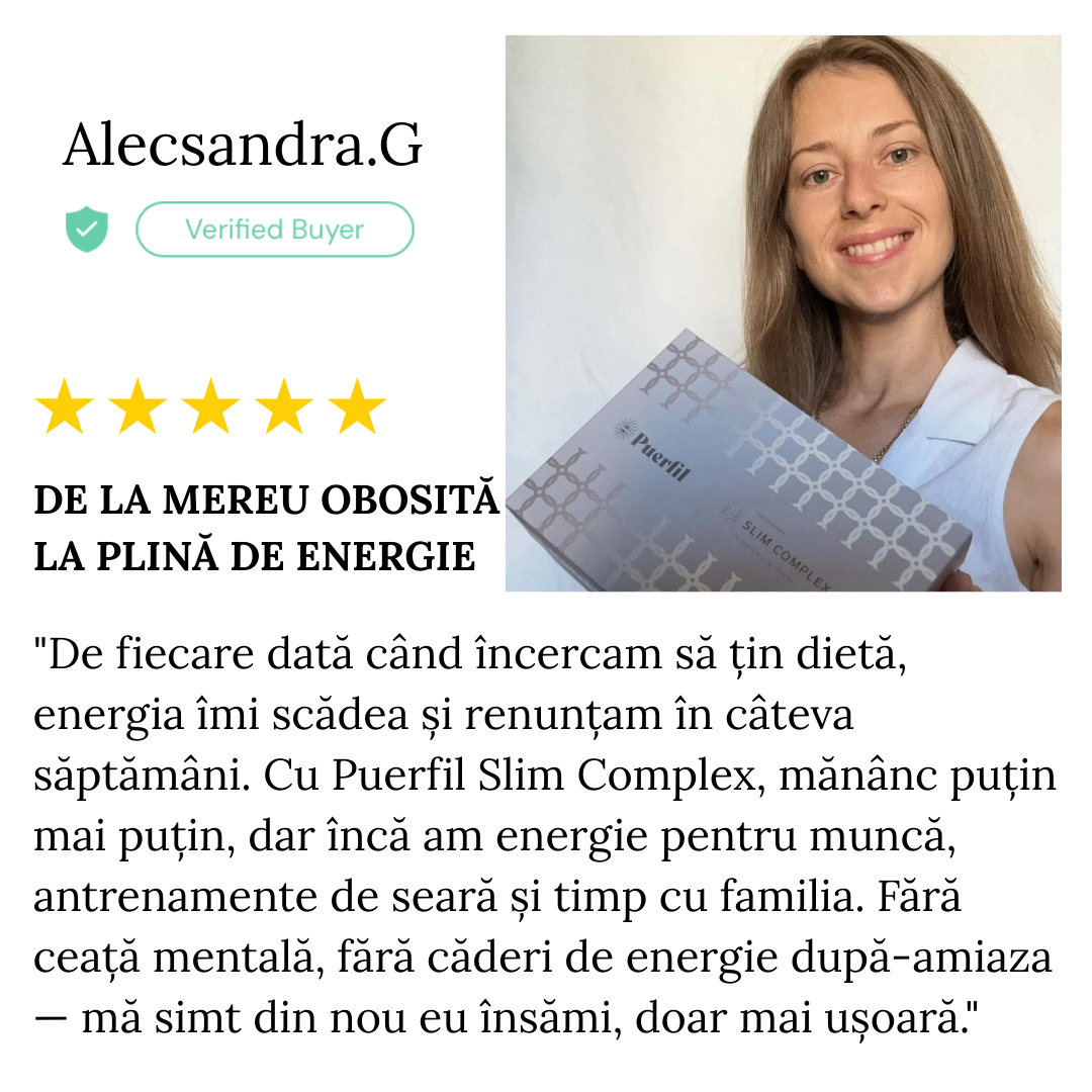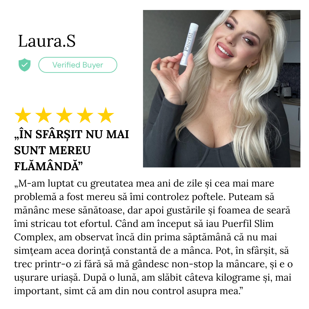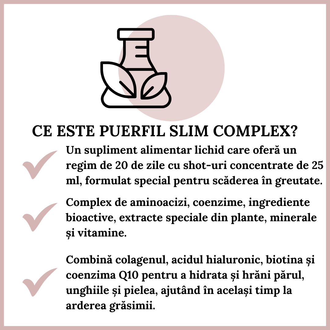 Utilizați Puerfil Slim Complex pentru a vă alinia apetitul, metabolismul și forma corpului într-o armonie perfectă și pentru a arăta lumii încă o dată adevăratul TU.