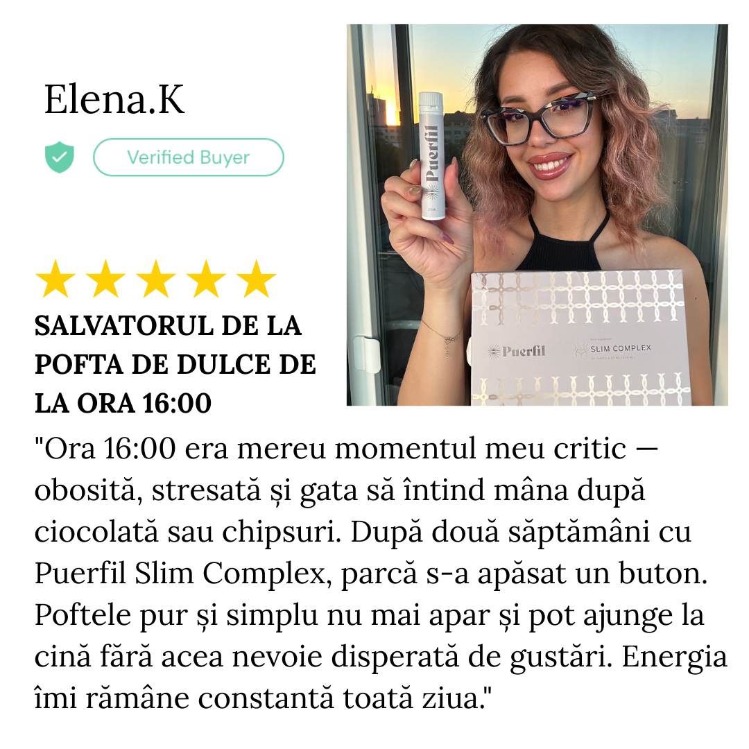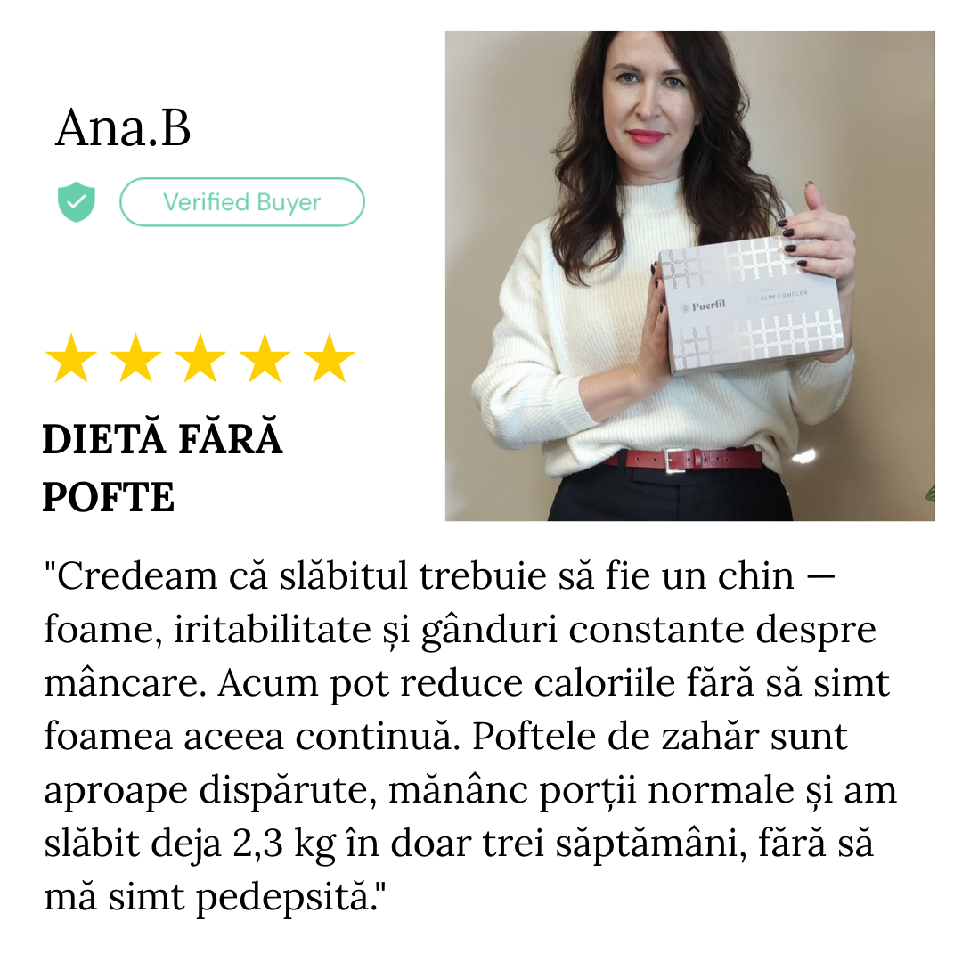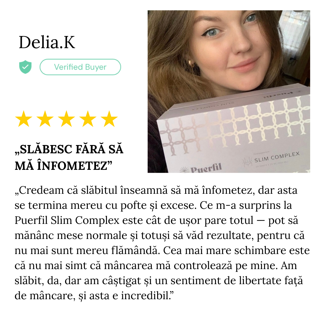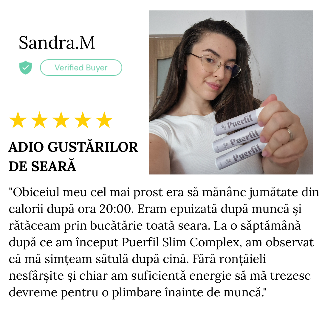 Utilizați Puerfil Slim Complex pentru a vă alinia apetitul, metabolismul și forma corpului într-o armonie perfectă și pentru a arăta lumii încă o dată adevăratul TU.