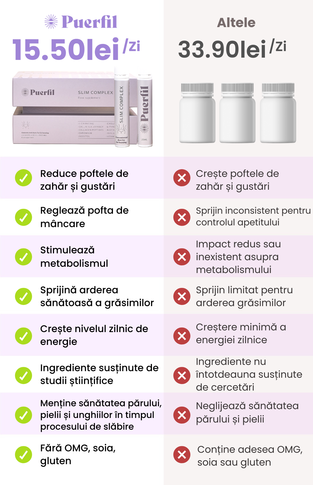 Puerfil Slim Complex comparat cu alte produse pentru slăbit